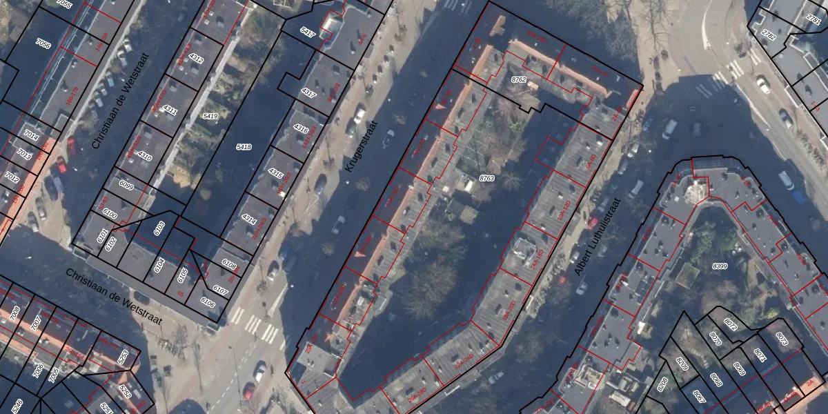 Krugerstraat 13-C is gelegen op kadastraal perceel ASD19W8763. Deze kadastrale aanduiding is uniek en wordt gebruikt door het Kadaster om eigendomsrechten en andere zakelijke rechten vast te leggen. Het perceel maakt onderdeel uit van de kadastrale gemeente Amsterdam.