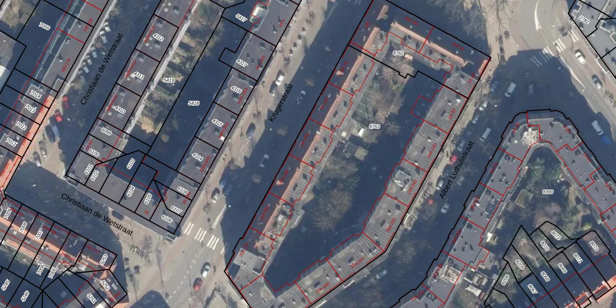 Krugerstraat 15-B is gelegen op kadastraal perceel ASD19W8763. Deze kadastrale aanduiding is uniek en wordt gebruikt door het Kadaster om eigendomsrechten en andere zakelijke rechten vast te leggen. Het perceel maakt onderdeel uit van de kadastrale gemeente Amsterdam.