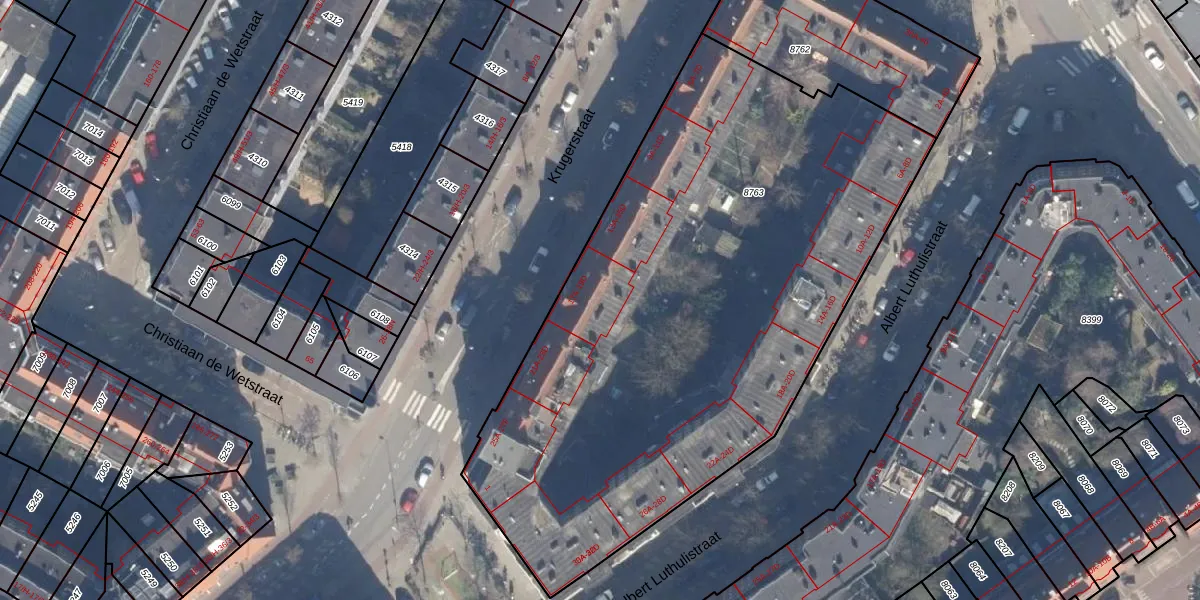 Krugerstraat 17-C is gelegen op kadastraal perceel ASD19W8763. Deze kadastrale aanduiding is uniek en wordt gebruikt door het Kadaster om eigendomsrechten en andere zakelijke rechten vast te leggen. Het perceel maakt onderdeel uit van de kadastrale gemeente Amsterdam.