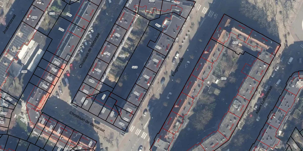 Het perceel waarop Krugerstraat 18-H staat heeft een oppervlakte van 118 m². Dit is een middelgroot perceel. De perceeloppervlakte wordt geregistreerd door het Kadaster. Gedetailleerde informatie over de maten van dit perceel kunt u vinden in het rapport Kadastrale kaart met maatvoering van Krugerstraat 18-H.
