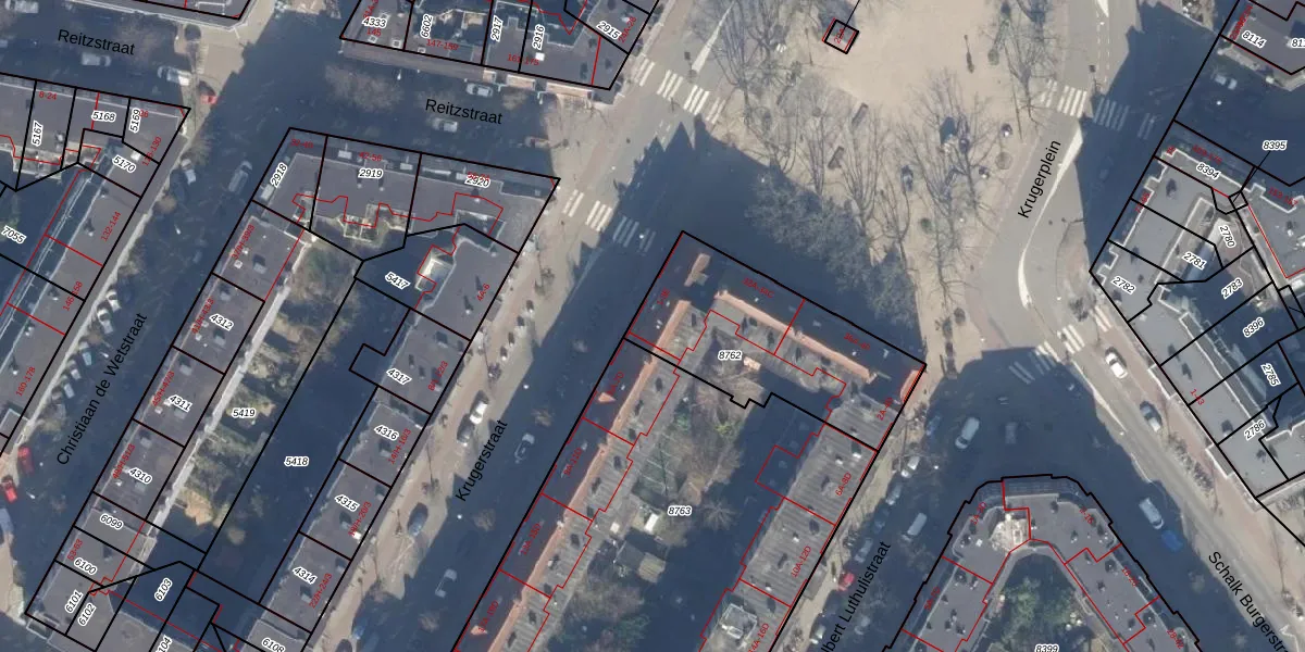 Krugerstraat 3-B is gelegen op kadastraal perceel ASD19W8762. Deze kadastrale aanduiding is uniek en wordt gebruikt door het Kadaster om eigendomsrechten en andere zakelijke rechten vast te leggen. Het perceel maakt onderdeel uit van de kadastrale gemeente Amsterdam.