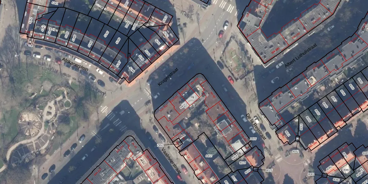 Krugerstraat 31-B is gelegen op kadastraal perceel ASD19W8403. Deze kadastrale aanduiding is uniek en wordt gebruikt door het Kadaster om eigendomsrechten en andere zakelijke rechten vast te leggen. Het perceel maakt onderdeel uit van de kadastrale gemeente Amsterdam.