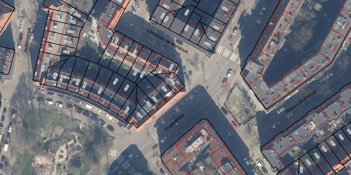 Het perceel waarop Krugerstraat 34-1 staat heeft een oppervlakte van 95 m². Dit is een klein perceel. De perceeloppervlakte wordt geregistreerd door het Kadaster. Gedetailleerde informatie over de maten van dit perceel kunt u vinden in het rapport Kadastrale kaart met maatvoering van Krugerstraat 34-1.