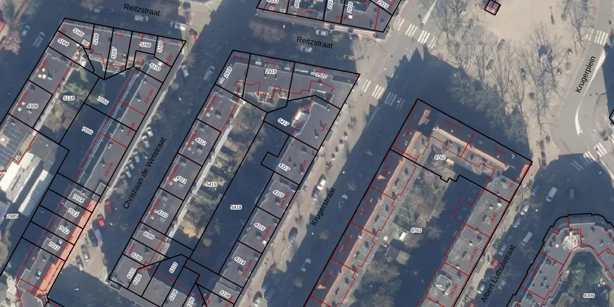 Krugerstraat 8-1 is gelegen op kadastraal perceel ASD19W4317. Deze kadastrale aanduiding is uniek en wordt gebruikt door het Kadaster om eigendomsrechten en andere zakelijke rechten vast te leggen. Het perceel maakt onderdeel uit van de kadastrale gemeente Amsterdam.