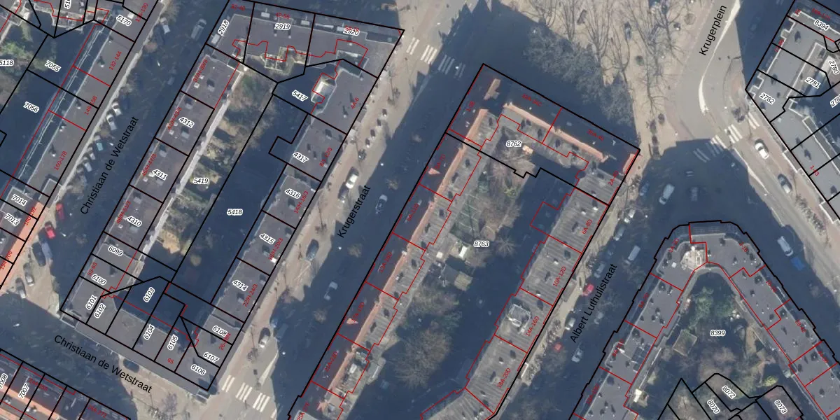 Krugerstraat 9-A is gelegen op kadastraal perceel ASD19W8763. Deze kadastrale aanduiding is uniek en wordt gebruikt door het Kadaster om eigendomsrechten en andere zakelijke rechten vast te leggen. Het perceel maakt onderdeel uit van de kadastrale gemeente Amsterdam.