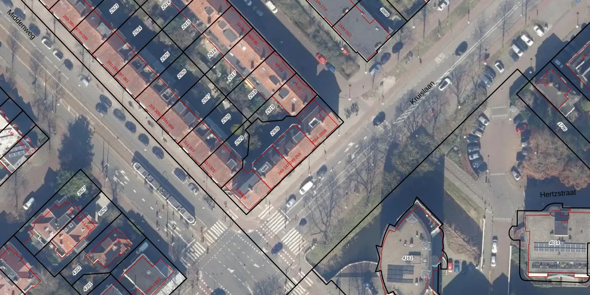 Kruislaan 251 is gelegen op kadastraal perceel WTG02B2909. Deze kadastrale aanduiding is uniek en wordt gebruikt door het Kadaster om eigendomsrechten en andere zakelijke rechten vast te leggen. Het perceel maakt onderdeel uit van de kadastrale gemeente Watergraafsmeer.