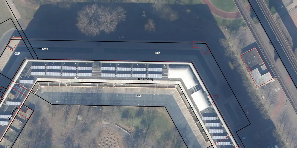 Het perceel waarop Kruitberg 3418 staat heeft een oppervlakte van 4902 m². Dit is een zeer groot perceel. De perceeloppervlakte wordt geregistreerd door het Kadaster. Gedetailleerde informatie over de maten van dit perceel kunt u vinden in het rapport Kadastrale kaart met maatvoering van Kruitberg 3418.