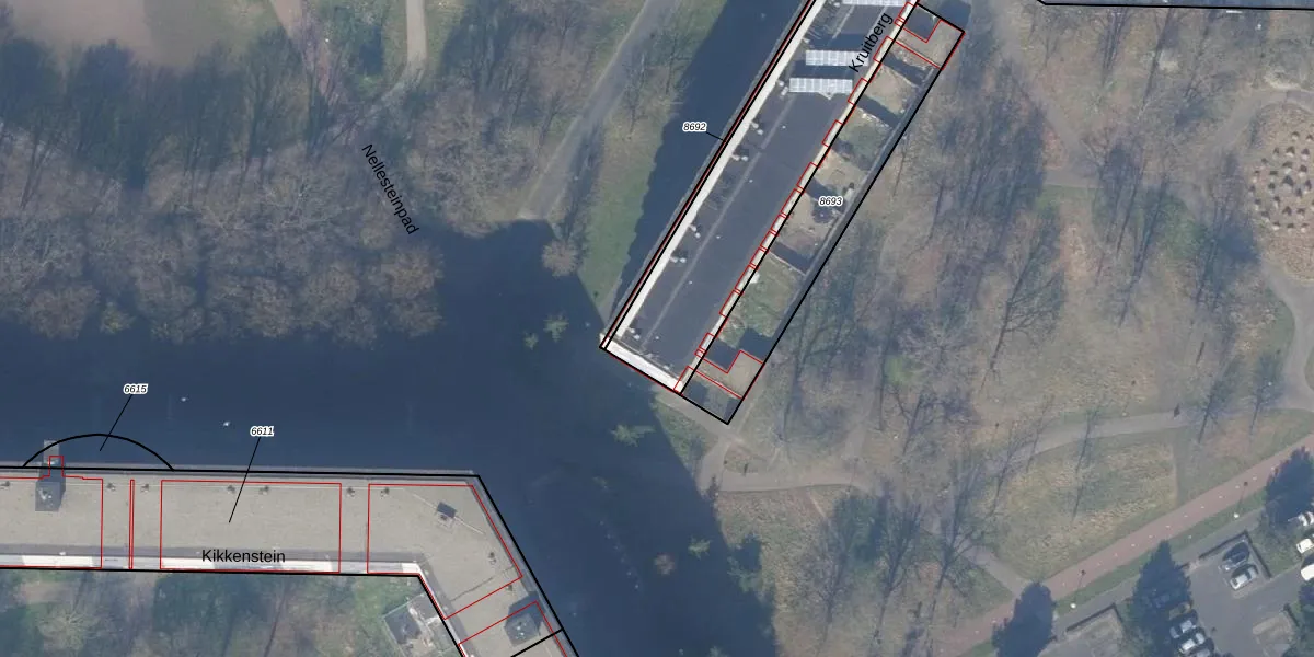 Het perceel waarop Kruitberg 5036-A staat heeft een oppervlakte van 4902 m². Dit is een zeer groot perceel. De perceeloppervlakte wordt geregistreerd door het Kadaster. Gedetailleerde informatie over de maten van dit perceel kunt u vinden in het rapport Kadastrale kaart met maatvoering van Kruitberg 5036-A.