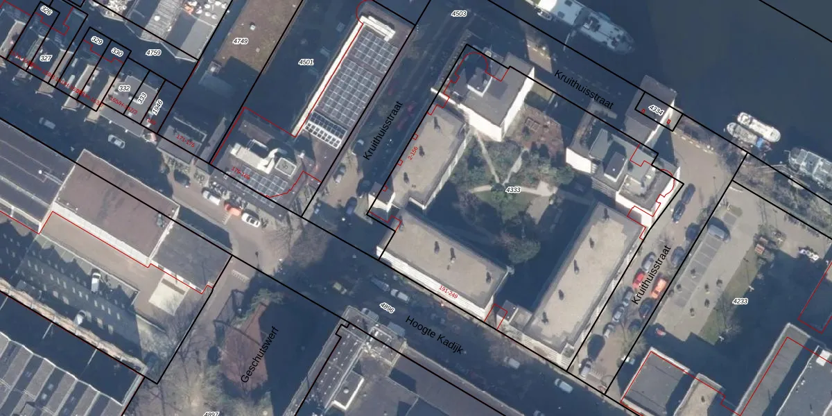 Kruithuisstraat 12 is gelegen op kadastraal perceel ASD11O4333. Deze kadastrale aanduiding is uniek en wordt gebruikt door het Kadaster om eigendomsrechten en andere zakelijke rechten vast te leggen. Het perceel maakt onderdeel uit van de kadastrale gemeente Amsterdam.
