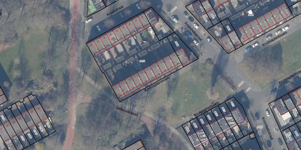 Het perceel waarop Krulslaplantsoen 27 staat heeft een oppervlakte van 2083 m². Dit is een zeer groot perceel. De perceeloppervlakte wordt geregistreerd door het Kadaster. Gedetailleerde informatie over de maten van dit perceel kunt u vinden in het rapport Kadastrale kaart met maatvoering van Krulslaplantsoen 27.