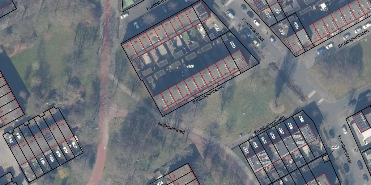 Het perceel waarop Krulslaplantsoen 31 staat heeft een oppervlakte van 2083 m². Dit is een zeer groot perceel. De perceeloppervlakte wordt geregistreerd door het Kadaster. Gedetailleerde informatie over de maten van dit perceel kunt u vinden in het rapport Kadastrale kaart met maatvoering van Krulslaplantsoen 31.