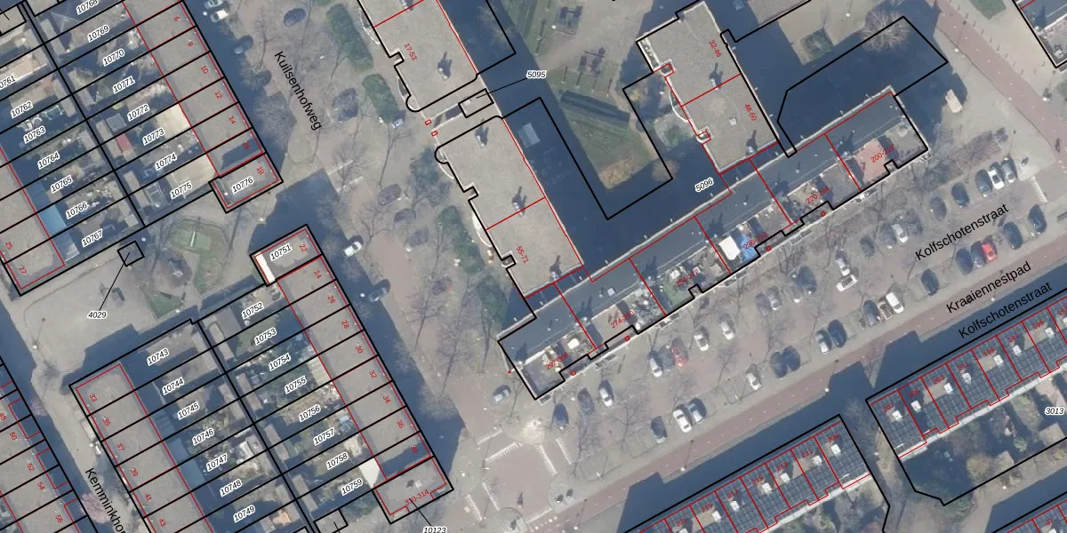 Het perceel waarop Kuilsenhofweg 55 staat heeft een oppervlakte van 3106 m². Dit is een zeer groot perceel. De perceeloppervlakte wordt geregistreerd door het Kadaster. Gedetailleerde informatie over de maten van dit perceel kunt u vinden in het rapport Kadastrale kaart met maatvoering van Kuilsenhofweg 55.
