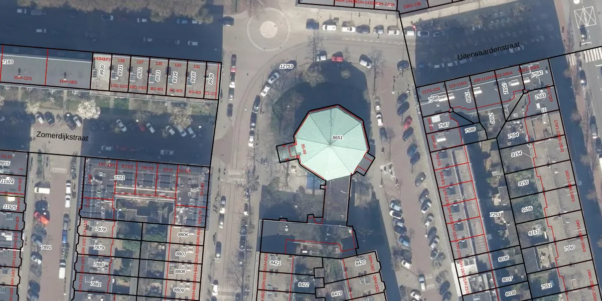 Het adres is gelegen op perceel 8651 in de sectie V en de kadastrale gemeente Amsterdam. De kadastrale aanduiding is aldus ASD18-V-8651. De oppervlakte van het perceel is 1014 m². Dat is groter dan gemiddeld in Amsterdam, waar de gemiddelde perceeloppervlakte op 559,23 m² ligt. De grootste perceeloppervlakte in de kadastrale gemeente is 12,5 ha. De kleinste oppervlakte bedraagt 0 m². Er zijn 5 adressen aanwezig op het perceel. De laatste wijziging in het de Basisregistratie Kadaster (BRK) was op 22-11-2006.