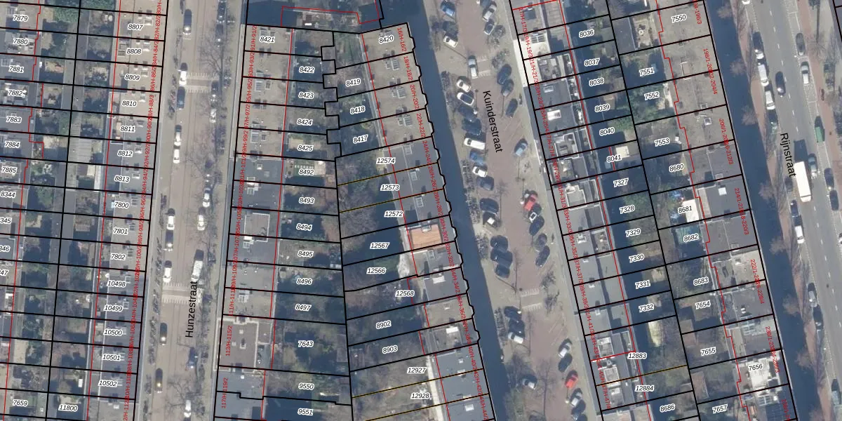 Het adres is gelegen op perceel 12572 in de sectie V en de kadastrale gemeente Amsterdam. De kadastrale aanduiding is aldus ASD18-V-12572. Het perceel is kleiner dan gemiddeld in Amsterdam. Het perceel is 164 m² groot, terwijl het gemiddelde ligt op 558,8 m². Het grootste perceel in de kadastrale gemeente is 12,5 ha. Het kleinste perceel heeft een oppervlakte van 0 m². Er zijn 3 adressen aanwezig op het perceel. De laatste wijziging in het de Basisregistratie Kadaster (BRK) was op 08-04-2019.