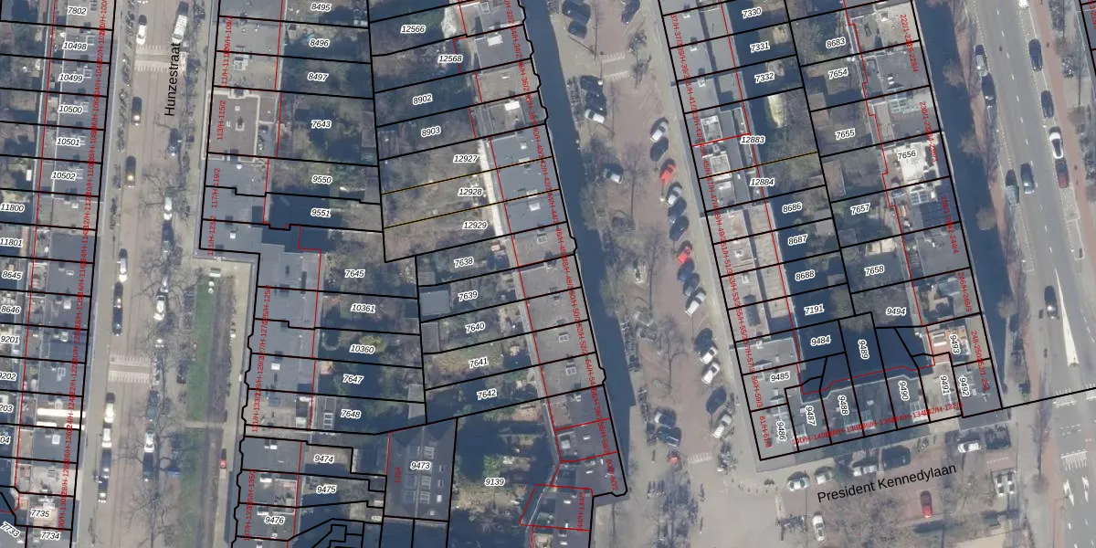 Het adres is gelegen op perceel 7639 in de sectie V en de kadastrale gemeente Amsterdam. De kadastrale aanduiding is aldus ASD18-V-7639. Het perceel is kleiner dan gemiddeld in Amsterdam. Het perceel is 182 m² groot, terwijl het gemiddelde ligt op 558,8 m². Het kleinste perceel in de kadastrale gemeente is 0 m² groot. De grootste perceeloppervlakte is 12,5 ha. Op het perceel zijn 3 adressen aanwezig. De huidige grenzen van het perceel zijn digitaal in de Basisregistratie Kadaster (BRK) geregistreerd op 29-11-2006.
