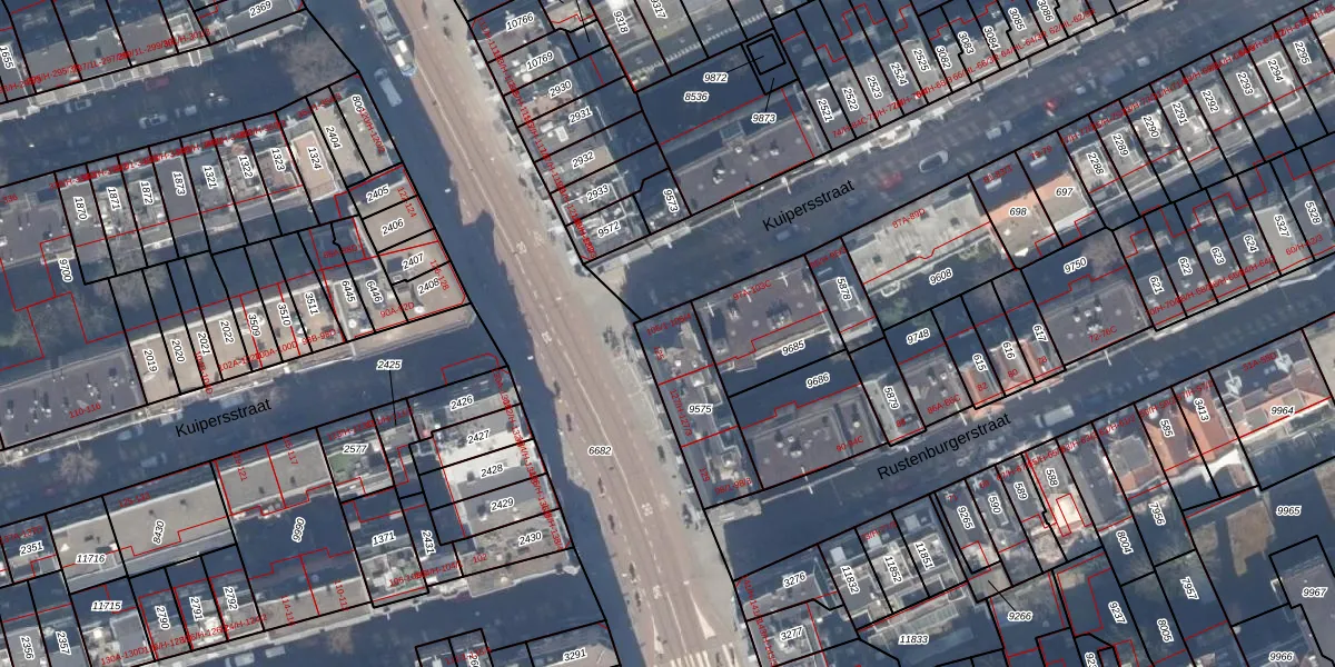 Het adres is gelegen op perceel 9575 in de sectie V en de kadastrale gemeente Amsterdam. De kadastrale aanduiding is aldus ASD18-V-9575. De gemiddelde perceelgrootte in Amsterdam is 558,8 m². Dit perceel is kleiner: de perceeloppervlakte bedraagt 283 m². De grootste perceeloppervlakte in de kadastrale gemeente is 12,5 ha. De kleinste oppervlakte bedraagt 0 m². Er zijn 13 adressen aanwezig op het perceel. De laatste wijziging in het de Basisregistratie Kadaster (BRK) was op 17-10-2006.