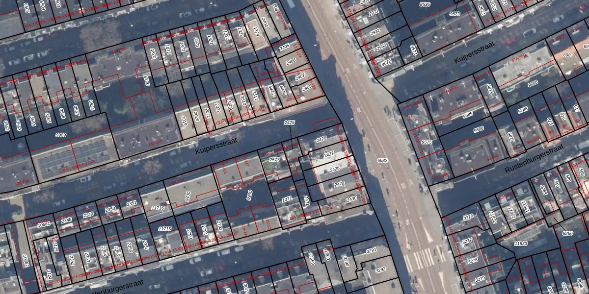 Het adres is gelegen op perceel 2425 in de sectie V en de kadastrale gemeente Amsterdam. De kadastrale aanduiding is aldus ASD18-V-2425. De gemiddelde perceelgrootte in Amsterdam is 558,8 m². Dit perceel is kleiner: de perceeloppervlakte bedraagt 65 m². De grootste perceeloppervlakte in de kadastrale gemeente is 12,5 ha. De kleinste oppervlakte bedraagt 0 m². Op het perceel zijn 2 adressen aanwezig. In de Basisregistratie Kadaster (BRK) werden de grenzen van het perceel geregistreerd op 11-08-2006.