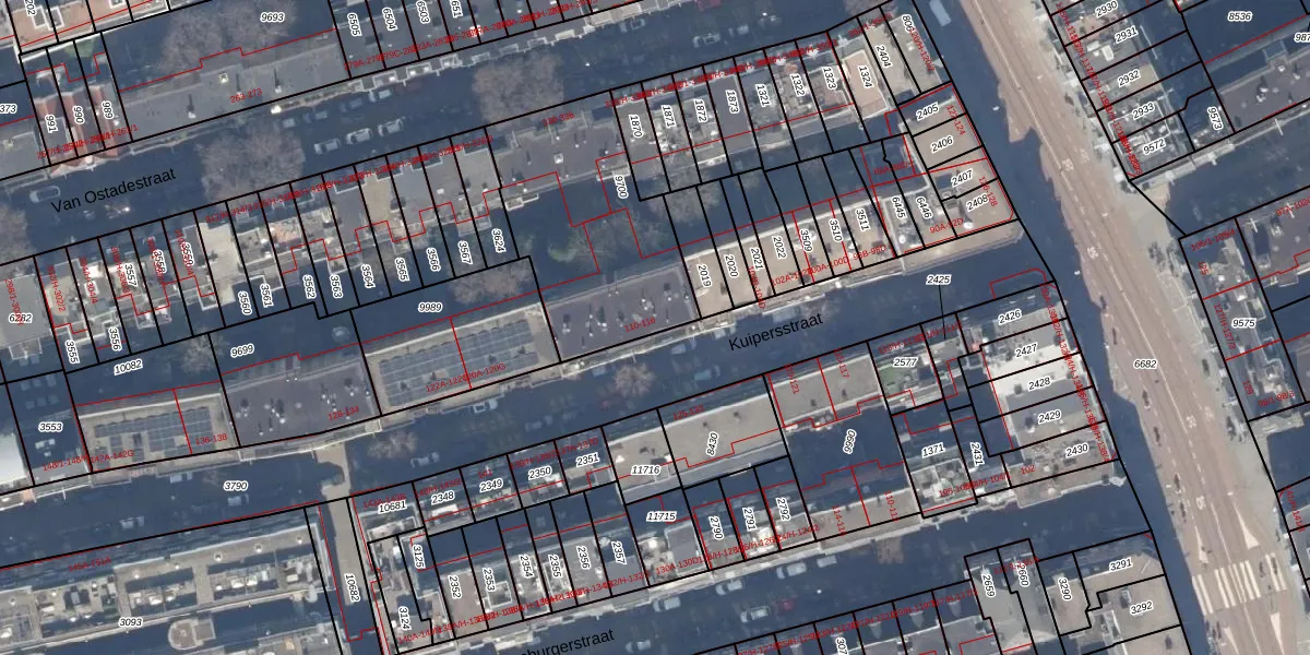 Kuipersstraat 112-D is gelegen op kadastraal perceel ASD18V9700. Deze kadastrale aanduiding is uniek en wordt gebruikt door het Kadaster om eigendomsrechten en andere zakelijke rechten vast te leggen. Het perceel maakt onderdeel uit van de kadastrale gemeente Amsterdam.