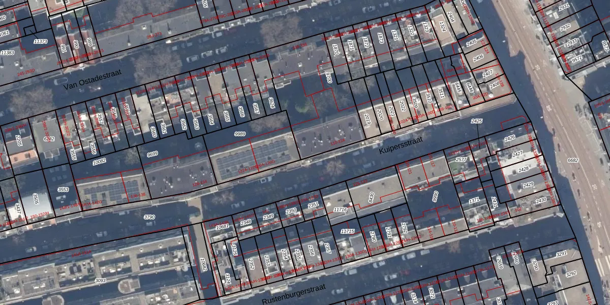 Kuipersstraat 116 is gelegen op kadastraal perceel ASD18V9700. Deze kadastrale aanduiding is uniek en wordt gebruikt door het Kadaster om eigendomsrechten en andere zakelijke rechten vast te leggen. Het perceel maakt onderdeel uit van de kadastrale gemeente Amsterdam.