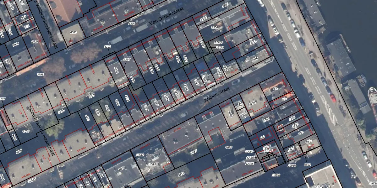 Het adres is gelegen op perceel 3316 in de sectie V en de kadastrale gemeente Amsterdam. De kadastrale aanduiding is aldus ASD18-V-3316. Het perceel is kleiner dan gemiddeld in Amsterdam. Het perceel is 101 m² groot, terwijl het gemiddelde ligt op 558,8 m². De grootste perceeloppervlakte in de kadastrale gemeente is 12,5 ha. De kleinste oppervlakte bedraagt 0 m². Er zijn 4 adressen aanwezig op het perceel. In de Basisregistratie Kadaster (BRK) werden de grenzen van het perceel geregistreerd op 17-10-2006.
