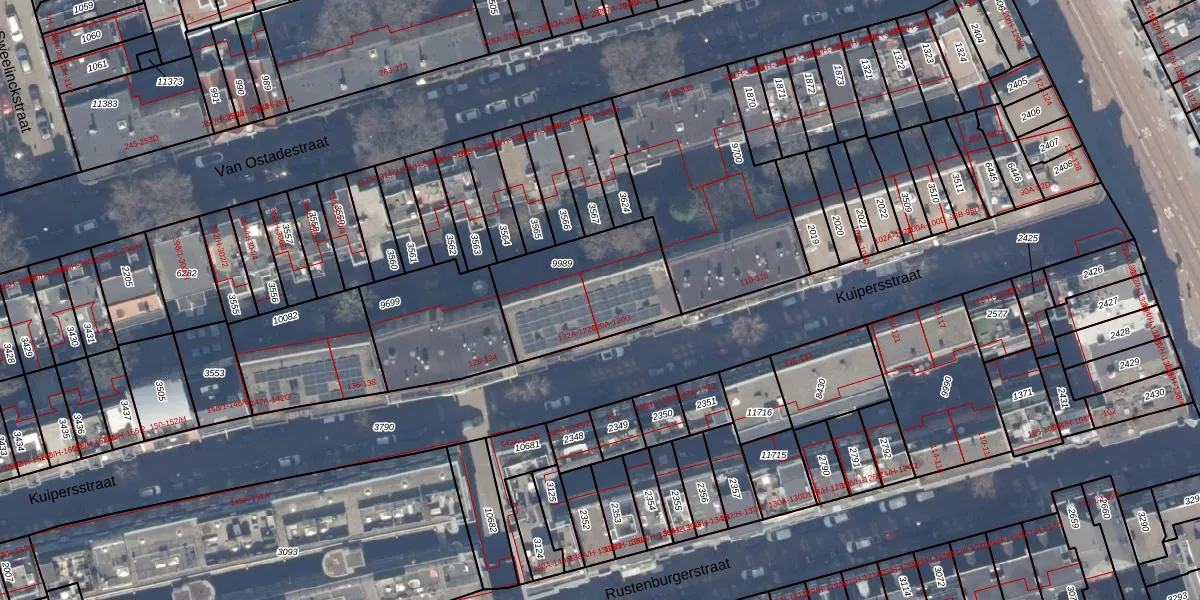 Het adres ligt op het perceel ASD18-V-9989, dat zich in de kadastrale gemeente Amsterdam bevindt. Het perceel is 472 m² groot. Dat is kleiner dan de gemiddelde perceeloppervlakte in Amsterdam, dat op 558,8 m² ligt. Het grootste perceel in de kadastrale gemeente is 12,5 ha. Het kleinste perceel heeft een oppervlakte van 0 m². Er zijn 14 adressen aanwezig op het perceel. De huidige grenzen van het perceel zijn digitaal in de Basisregistratie Kadaster (BRK) geregistreerd op 11-08-2006.