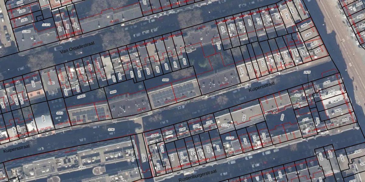 Het adres ligt op het perceel ASD18-V-9989, dat zich in de kadastrale gemeente Amsterdam bevindt. Het perceel is 472 m² groot. Dat is kleiner dan de gemiddelde perceeloppervlakte in Amsterdam, dat op 558,8 m² ligt. Het grootste perceel in de kadastrale gemeente is 12,5 ha. Het kleinste perceel heeft een oppervlakte van 0 m². Er zijn 14 adressen aanwezig op het perceel. De laatste wijziging in het de Basisregistratie Kadaster (BRK) was op 11-08-2006.