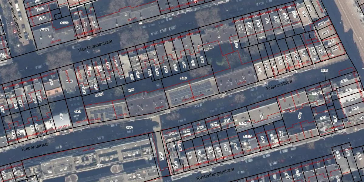 Het adres ligt op het perceel ASD18-V-9989, dat zich in de kadastrale gemeente Amsterdam bevindt. Het perceel is 472 m² groot. Dat is kleiner dan de gemiddelde perceeloppervlakte in Amsterdam, dat op 558,8 m² ligt. Het grootste perceel in de kadastrale gemeente is 12,5 ha. Het kleinste perceel heeft een oppervlakte van 0 m². Er zijn 14 adressen aanwezig op het perceel. De laatste wijziging in het de Basisregistratie Kadaster (BRK) was op 11-08-2006.