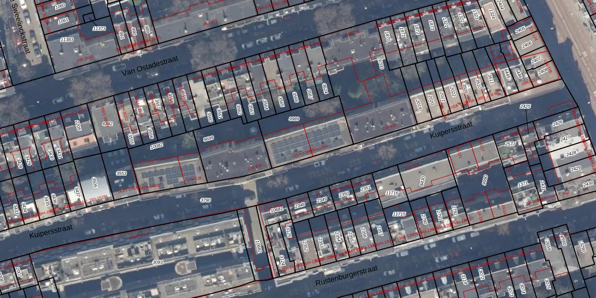 Het adres ligt op het perceel ASD18-V-9989, dat zich in de kadastrale gemeente Amsterdam bevindt. Het perceel is 472 m² groot. Dat is kleiner dan de gemiddelde perceeloppervlakte in Amsterdam, dat op 558,8 m² ligt. Het grootste perceel in de kadastrale gemeente is 12,5 ha. Het kleinste perceel heeft een oppervlakte van 0 m². Er zijn 14 adressen aanwezig op het perceel. In de Basisregistratie Kadaster (BRK) werden de grenzen van het perceel geregistreerd op 11-08-2006.