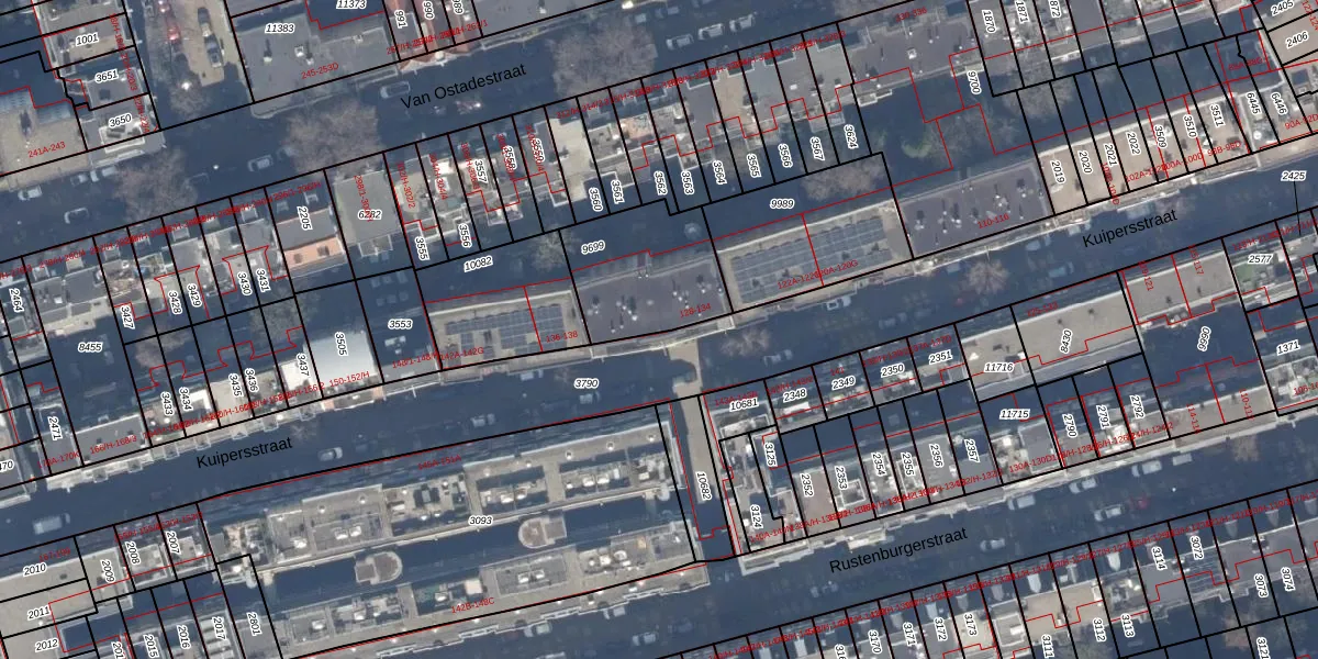 Het adres is gelegen op perceel 9699 in de sectie V en de kadastrale gemeente Amsterdam. De kadastrale aanduiding is aldus ASD18-V-9699. Het perceel is kleiner dan gemiddeld in Amsterdam. Het perceel is 405 m² groot, terwijl het gemiddelde ligt op 558,8 m². Het kleinste perceel in de kadastrale gemeente is 0 m² groot. De grootste perceeloppervlakte is 12,5 ha. Op het perceel liggen in totaal 15 adressen. De huidige grenzen van het perceel zijn digitaal in de Basisregistratie Kadaster (BRK) geregistreerd op 09-08-2006.