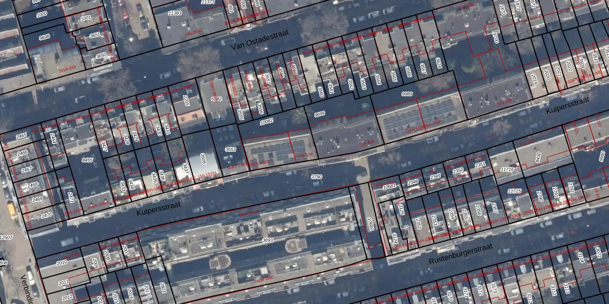 Het adres ligt op het perceel ASD18-V-10082, dat zich in de kadastrale gemeente Amsterdam bevindt. Het perceel is 361 m² groot. Dat is kleiner dan de gemiddelde perceeloppervlakte in Amsterdam, dat op 558,8 m² ligt. Het grootste perceel in de kadastrale gemeente is 12,5 ha. Het kleinste perceel heeft een oppervlakte van 0 m². Op het perceel zijn 9 adressen aanwezig. De laatste wijziging in het de Basisregistratie Kadaster (BRK) was op 09-08-2006.
