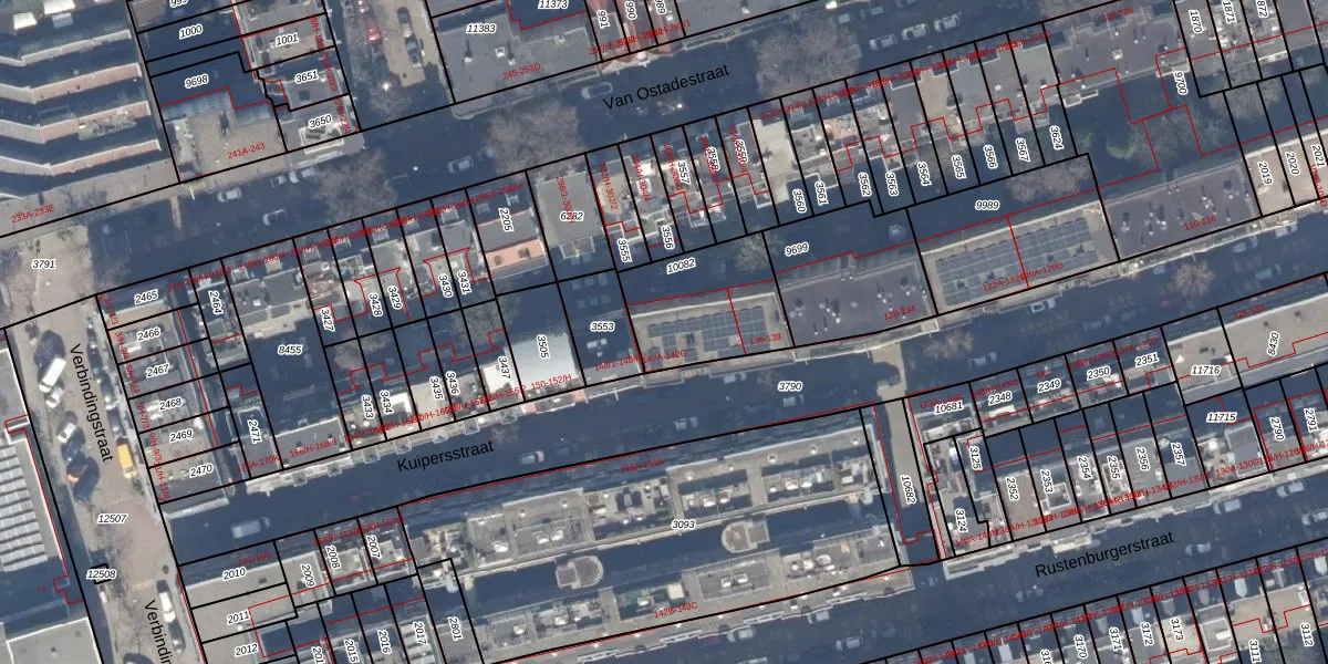 Het adres ligt op het perceel ASD18-V-10082, dat zich in de kadastrale gemeente Amsterdam bevindt. Het perceel is 361 m² groot. Dat is kleiner dan de gemiddelde perceeloppervlakte in Amsterdam, dat op 559,23 m² ligt. Het grootste perceel in de kadastrale gemeente is 12,5 ha. Het kleinste perceel heeft een oppervlakte van 0 m². Op het perceel zijn 9 adressen aanwezig. De huidige grenzen van het perceel zijn digitaal in de Basisregistratie Kadaster (BRK) geregistreerd op 09-08-2006.