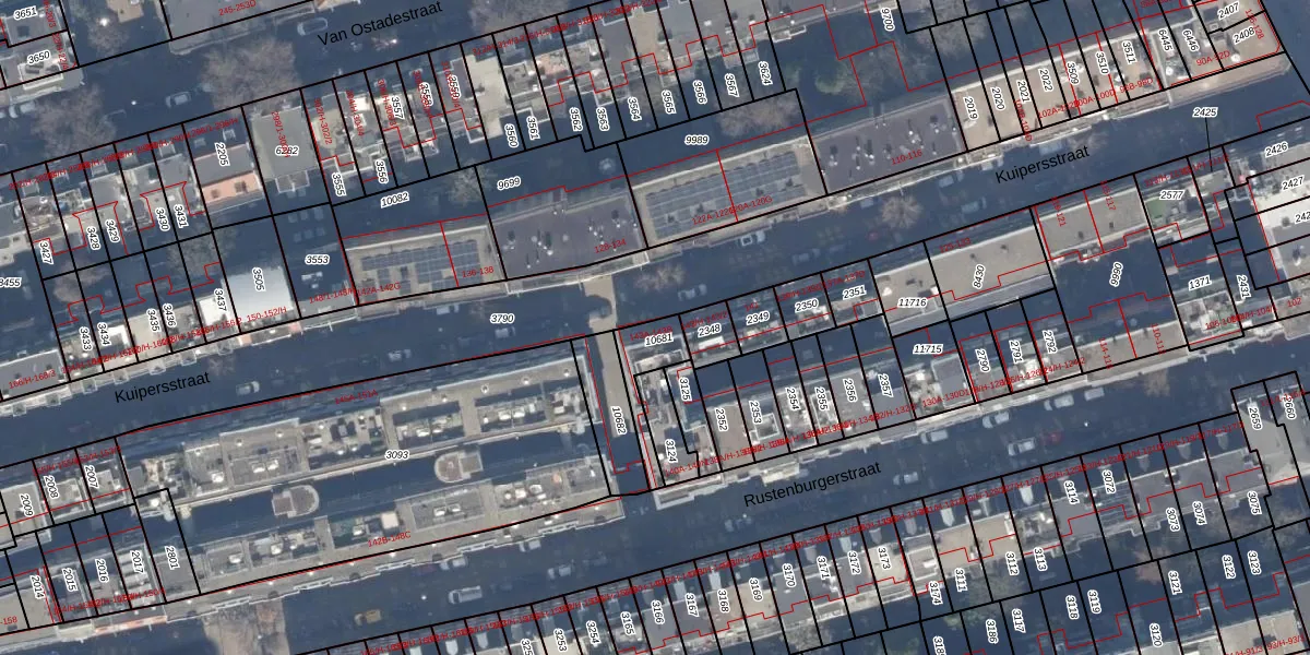 Het perceel waarop Kuipersstraat 143-B staat heeft een oppervlakte van 121 m². Dit is een middelgroot perceel. De perceeloppervlakte wordt geregistreerd door het Kadaster. Gedetailleerde informatie over de maten van dit perceel kunt u vinden in het rapport Kadastrale kaart met maatvoering van Kuipersstraat 143-B.