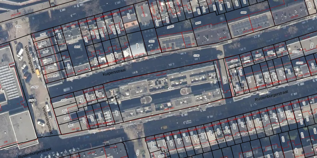 Het perceel waarop Kuipersstraat 149-A-19 staat heeft een oppervlakte van 1753 m². Dit is een zeer groot perceel. De perceeloppervlakte wordt geregistreerd door het Kadaster. Gedetailleerde informatie over de maten van dit perceel kunt u vinden in het rapport Kadastrale kaart met maatvoering van Kuipersstraat 149-A-19.