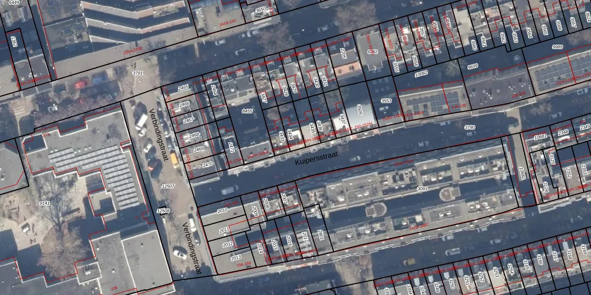 Het perceel waarop Kuipersstraat 162-2 staat heeft een oppervlakte van 82 m². Dit is een klein perceel. De perceeloppervlakte wordt geregistreerd door het Kadaster. Gedetailleerde informatie over de maten van dit perceel kunt u vinden in het rapport Kadastrale kaart met maatvoering van Kuipersstraat 162-2.