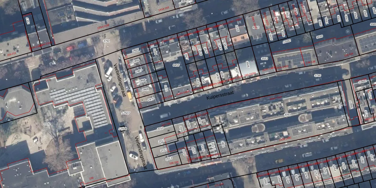 Kuipersstraat 166-1 is gelegen op kadastraal perceel ASD18V8455. Deze kadastrale aanduiding is uniek en wordt gebruikt door het Kadaster om eigendomsrechten en andere zakelijke rechten vast te leggen. Het perceel maakt onderdeel uit van de kadastrale gemeente Amsterdam.
