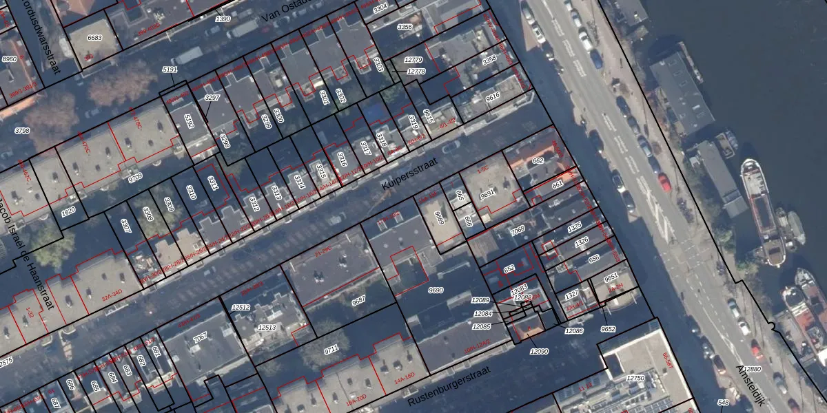 Het adres is gelegen op perceel 9690 in de sectie V en de kadastrale gemeente Amsterdam. De kadastrale aanduiding is aldus ASD18-V-9690. De gemiddelde perceeloppervlakte in de kadastrale gemeente Amsterdam is 558,8 m². Dit perceel is met zijn 790 m² dus groter dan gemiddeld. De grootste perceeloppervlakte in de kadastrale gemeente is 12,5 ha. De kleinste oppervlakte bedraagt 0 m². Op het perceel zijn 17 adressen aanwezig. In de Basisregistratie Kadaster (BRK) werden de grenzen van het perceel geregistreerd op 03-12-2013.