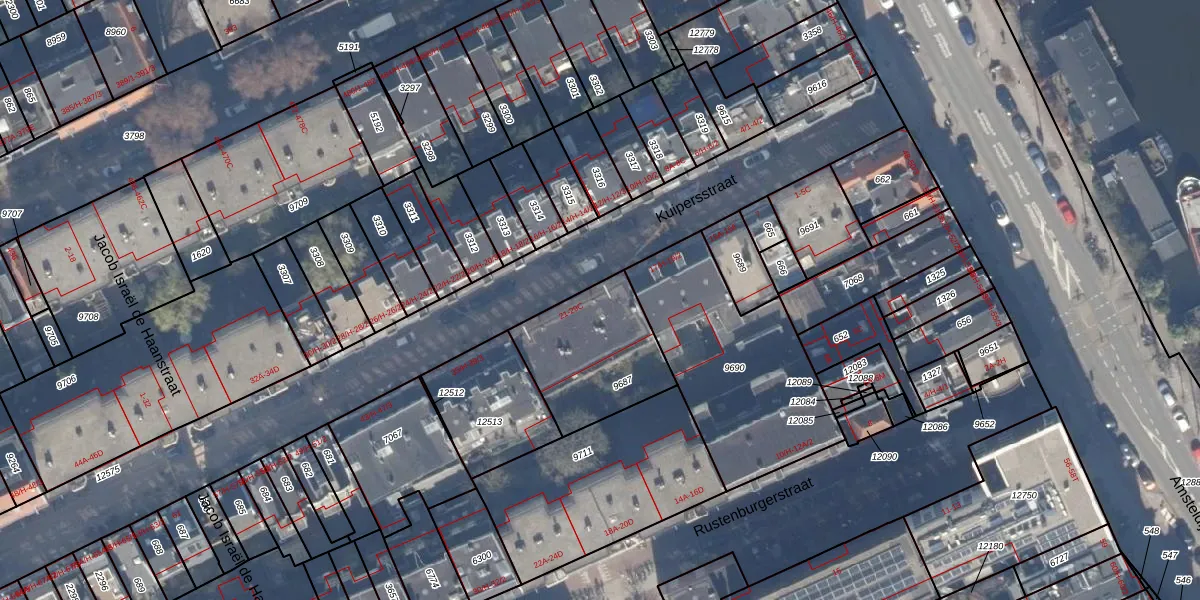 Het adres is gelegen op perceel 9687 in de sectie V en de kadastrale gemeente Amsterdam. De kadastrale aanduiding is aldus ASD18-V-9687. Het perceel is kleiner dan gemiddeld in Amsterdam. Het perceel is 445 m² groot, terwijl het gemiddelde ligt op 558,8 m². De grootste perceeloppervlakte in de kadastrale gemeente is 12,5 ha. De kleinste oppervlakte bedraagt 0 m². Er zijn 11 adressen aanwezig op het perceel. In de Basisregistratie Kadaster (BRK) werden de grenzen van het perceel geregistreerd op 17-10-2006.