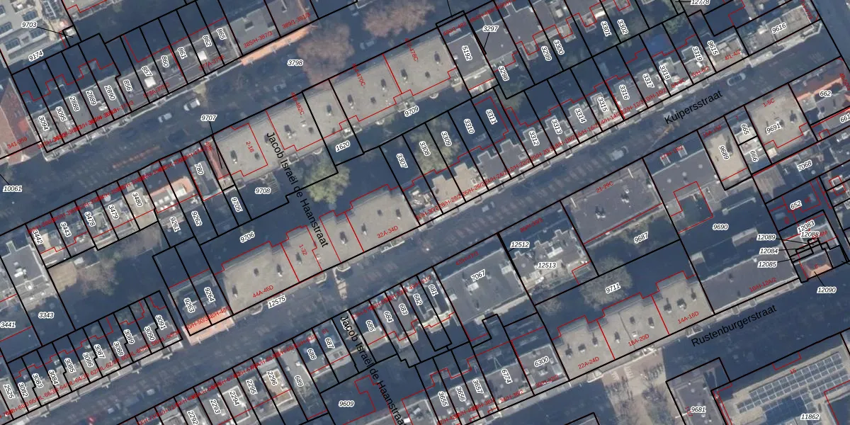 Het adres ligt op het perceel ASD18-V-3307, dat zich in de kadastrale gemeente Amsterdam bevindt. Het perceel is 132 m² groot. Dat is kleiner dan de gemiddelde perceeloppervlakte in Amsterdam, dat op 558,8 m² ligt. Het grootste perceel in de kadastrale gemeente is 12,5 ha. Het kleinste perceel heeft een oppervlakte van 0 m². Er zijn 3 adressen aanwezig op het perceel. De laatste wijziging in het de Basisregistratie Kadaster (BRK) was op 17-10-2006.