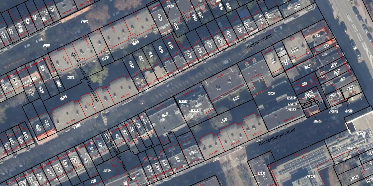 Het adres is gelegen op perceel 12513 in de sectie V en de kadastrale gemeente Amsterdam. De kadastrale aanduiding is aldus ASD18-V-12513. Het perceel is kleiner dan gemiddeld in Amsterdam. Het perceel is 332 m² groot, terwijl het gemiddelde ligt op 558,8 m². De grootste perceeloppervlakte in de kadastrale gemeente is 12,5 ha. De kleinste oppervlakte bedraagt 0 m². Op het perceel zijn 16 adressen aanwezig. De laatste wijziging in het de Basisregistratie Kadaster (BRK) was op 07-11-2017.