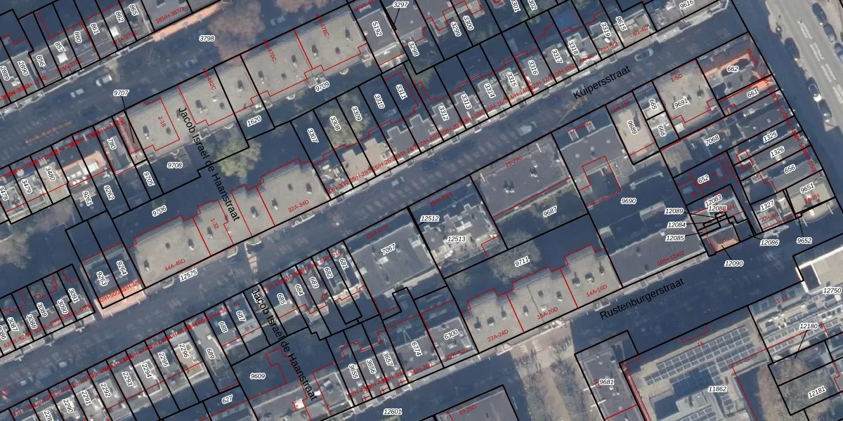 Het adres ligt op het perceel ASD18-V-12513, dat zich in de kadastrale gemeente Amsterdam bevindt. De gemiddelde perceelgrootte in Amsterdam is 559,23 m². Dit perceel is kleiner: de perceeloppervlakte bedraagt 332 m². Het kleinste perceel in de kadastrale gemeente is 0 m² groot. De grootste perceeloppervlakte is 12,5 ha. Op het perceel liggen in totaal 16 adressen. In de Basisregistratie Kadaster (BRK) werden de grenzen van het perceel geregistreerd op 07-11-2017.