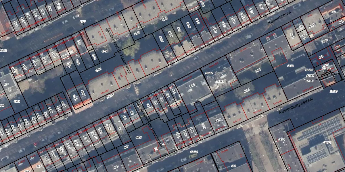 Het adres is gelegen op perceel 681 in de sectie V en de kadastrale gemeente Amsterdam. De kadastrale aanduiding is aldus ASD18-V-681. Het perceel is kleiner dan gemiddeld in Amsterdam. Het perceel is 83 m² groot, terwijl het gemiddelde ligt op 558,8 m². Het grootste perceel in de kadastrale gemeente is 12,5 ha. Het kleinste perceel heeft een oppervlakte van 0 m². Op het perceel liggen in totaal 3 adressen. De huidige grenzen van het perceel zijn digitaal in de Basisregistratie Kadaster (BRK) geregistreerd op 17-10-2006.