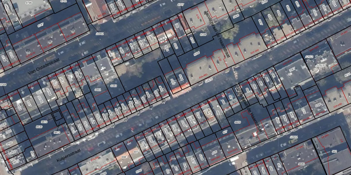 Het adres is gelegen op perceel 9263 in de sectie V en de kadastrale gemeente Amsterdam. De kadastrale aanduiding is aldus ASD18-V-9263. Het perceel is kleiner dan gemiddeld in Amsterdam. Het perceel is 115 m² groot, terwijl het gemiddelde ligt op 558,8 m². Het grootste perceel in de kadastrale gemeente is 12,5 ha. Het kleinste perceel heeft een oppervlakte van 0 m². Er zijn 4 adressen aanwezig op het perceel. In de Basisregistratie Kadaster (BRK) werden de grenzen van het perceel geregistreerd op 10-11-2006.