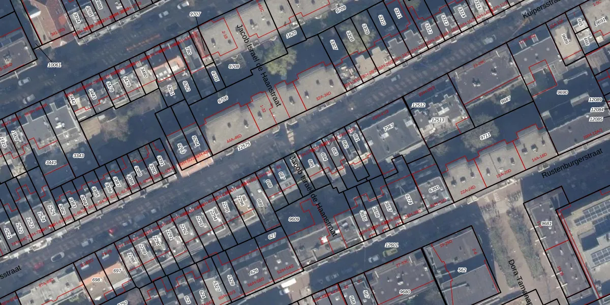 Het adres is gelegen op perceel 685 in de sectie V en de kadastrale gemeente Amsterdam. De kadastrale aanduiding is aldus ASD18-V-685. Het perceel is kleiner dan gemiddeld in Amsterdam. Het perceel is 74 m² groot, terwijl het gemiddelde ligt op 558,8 m². Het grootste perceel in de kadastrale gemeente is 12,5 ha. Het kleinste perceel heeft een oppervlakte van 0 m². Op het perceel zijn 3 adressen aanwezig. De laatste wijziging in het de Basisregistratie Kadaster (BRK) was op 17-10-2006.