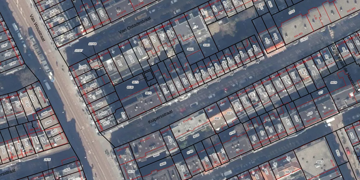 Het adres is gelegen op perceel 2523 in de sectie V en de kadastrale gemeente Amsterdam. De kadastrale aanduiding is aldus ASD18-V-2523. De gemiddelde perceelgrootte in Amsterdam is 558,8 m². Dit perceel is kleiner: de perceeloppervlakte bedraagt 85 m². Het kleinste perceel in de kadastrale gemeente is 0 m² groot. De grootste perceeloppervlakte is 12,5 ha. Op het perceel liggen in totaal 5 adressen. In de Basisregistratie Kadaster (BRK) werden de grenzen van het perceel geregistreerd op 17-10-2006.