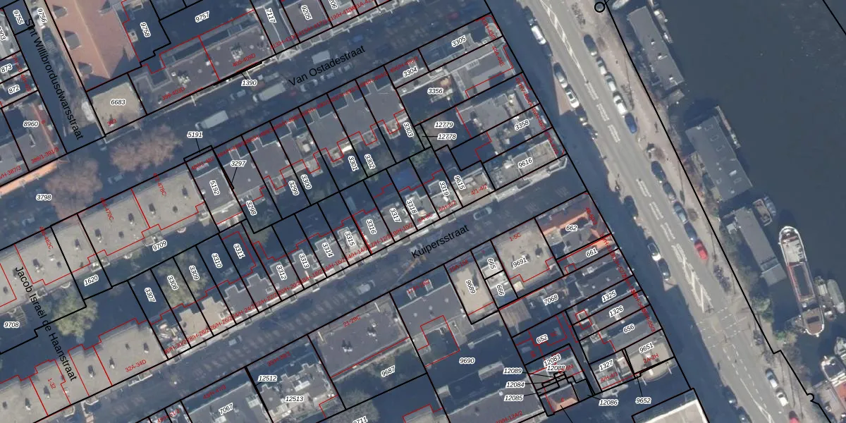 Het adres ligt op het perceel ASD18-V-3318, dat zich in de kadastrale gemeente Amsterdam bevindt. De gemiddelde perceelgrootte in Amsterdam is 559,23 m². Dit perceel is kleiner: de perceeloppervlakte bedraagt 99 m². Het kleinste perceel in de kadastrale gemeente is 0 m² groot. De grootste perceeloppervlakte is 12,5 ha. Op het perceel liggen in totaal 3 adressen. In de Basisregistratie Kadaster (BRK) werden de grenzen van het perceel geregistreerd op 10-11-2006.