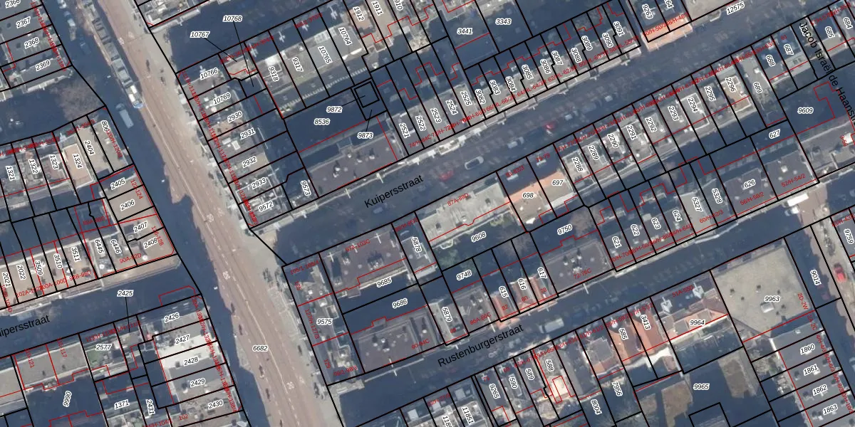 Het adres is gelegen op perceel 9608 in de sectie V en de kadastrale gemeente Amsterdam. De kadastrale aanduiding is aldus ASD18-V-9608. De gemiddelde perceelgrootte in Amsterdam is 558,8 m². Dit perceel is kleiner: de perceeloppervlakte bedraagt 343 m². Het kleinste perceel in de kadastrale gemeente is 0 m² groot. De grootste perceeloppervlakte is 12,5 ha. Op het perceel zijn 7 adressen aanwezig. De huidige grenzen van het perceel zijn digitaal in de Basisregistratie Kadaster (BRK) geregistreerd op 17-10-2006.