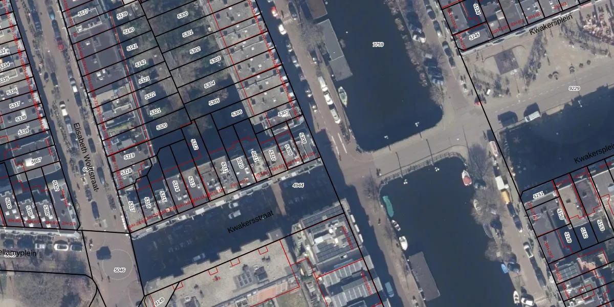 Het perceel waarop Kwakersstraat 2-3 staat heeft een oppervlakte van 90 m². Dit is een klein perceel. De perceeloppervlakte wordt geregistreerd door het Kadaster. Gedetailleerde informatie over de maten van dit perceel kunt u vinden in het rapport Kadastrale kaart met maatvoering van Kwakersstraat 2-3.