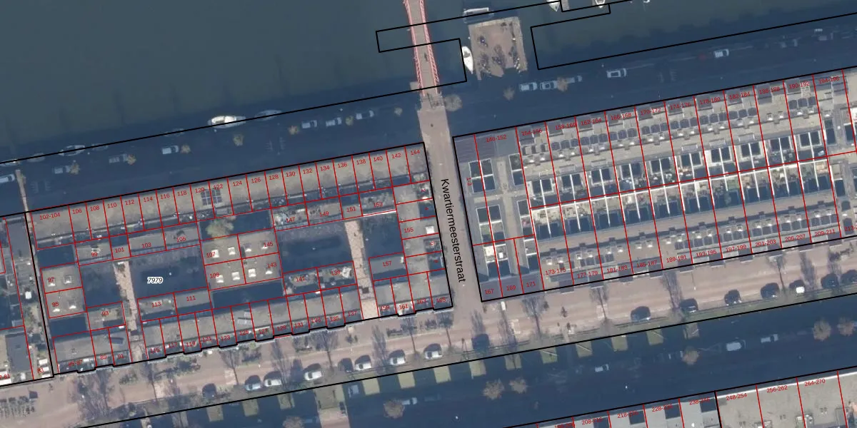 Het adres is gelegen op perceel 7979 in de sectie A en de kadastrale gemeente Amsterdam. De kadastrale aanduiding is aldus ASD02-A-7979. De oppervlakte van het perceel is 3661 m². Dat is groter dan gemiddeld in Amsterdam, waar de gemiddelde perceeloppervlakte op 2763,93 m² ligt. De grootste perceeloppervlakte in de kadastrale gemeente is 14,3 ha. De kleinste oppervlakte bedraagt 0 m². Op het perceel liggen in totaal 68 adressen. In de Basisregistratie Kadaster (BRK) werden de grenzen van het perceel geregistreerd op 09-02-2006.