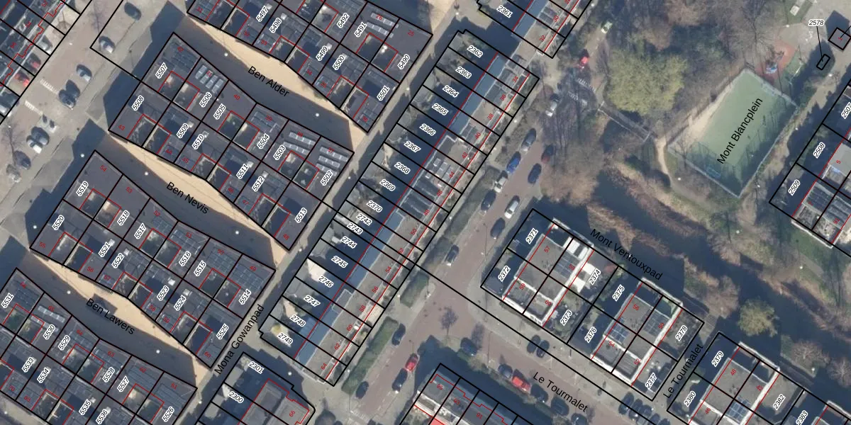 Gebruik de zoekbalk of klik op een perceel voor informatie over de adressen binnen dit perceel.