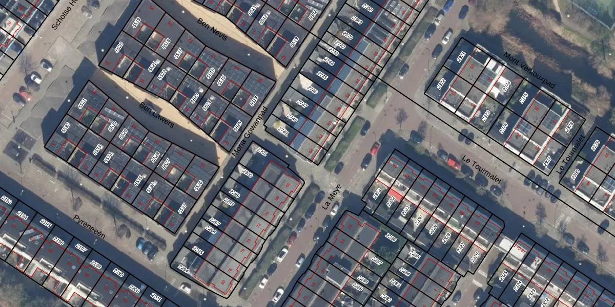Gebruik de zoekbalk of klik op een perceel voor informatie over de adressen binnen dit perceel.